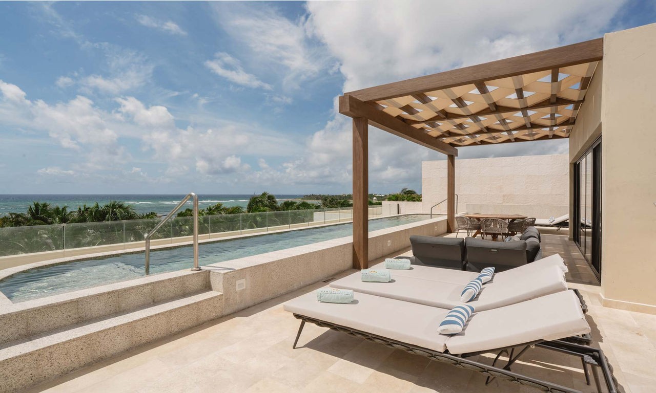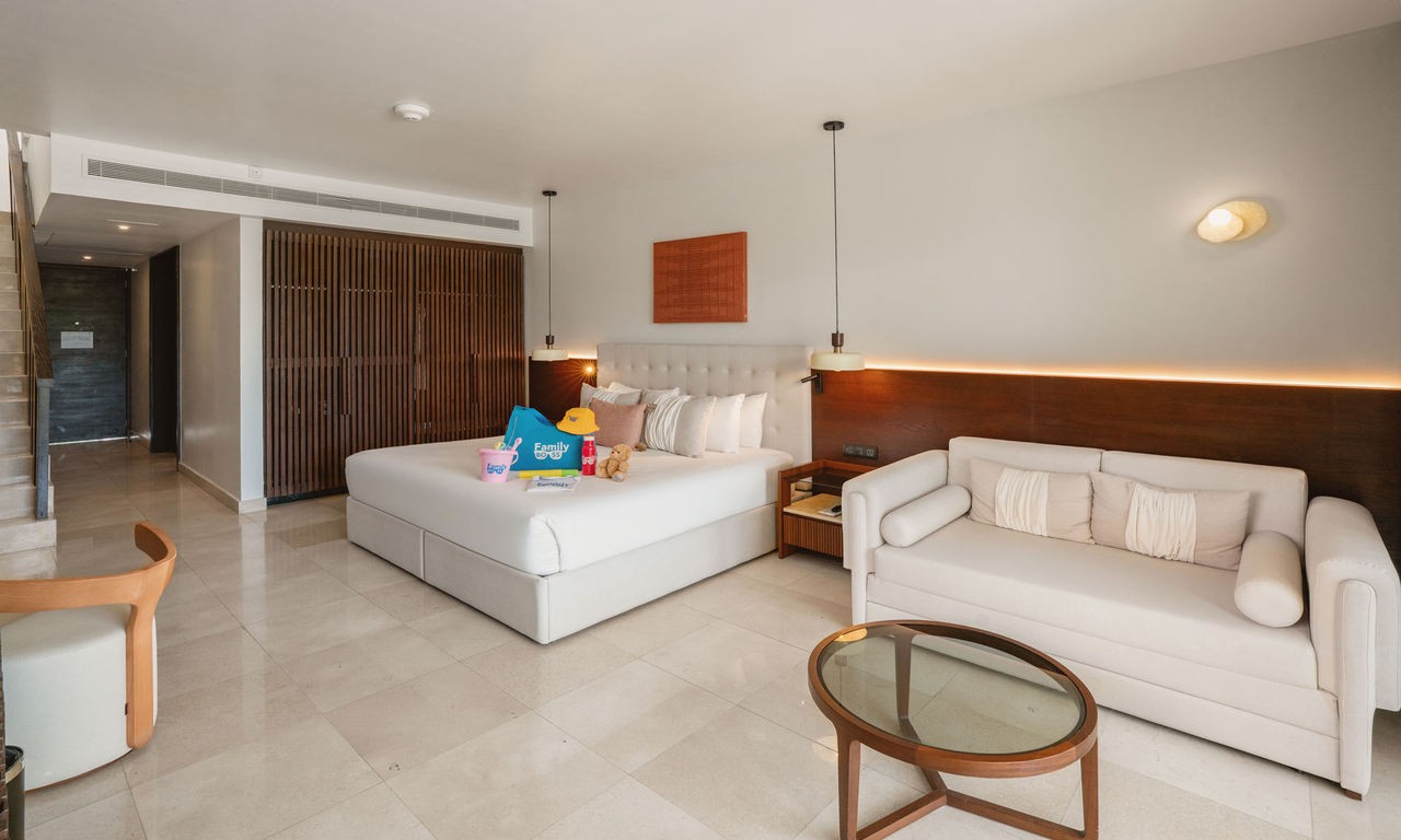 Lass dich in diesem Zimmer mit Zugang zum Swim-up-Pool und einer großen Terrasse mit balinesischer Lieger von den spektakulären Sonnenuntergängen der Riviera Maya verzaubern.