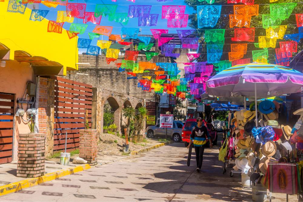 Bunte Wimpel, charmante Plätze, Bio-Essen, Surfen, Kunsthandwerksläden – willkommen in Sayulita! Dieses kleine Fischerdorf hat sich dank kalifornischer Surfer, die seit den 1960er Jahren an seine Küsten kommen, um die besten Wellen zu reiten, weiterentwickelt. Heute ist Sayulita ein Bezugspunkt an der Riviera Nayarit und eines der „magischen Dörfer“ Mexikos, bekannt für seinen eklektischen und entspannten Charakter.