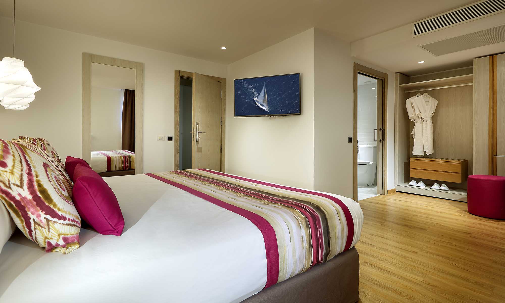 All of the rooms have a balcony or terrace that allows stunning sea or garden views and premium options such as a Jacuzzi or an extra bedroom.