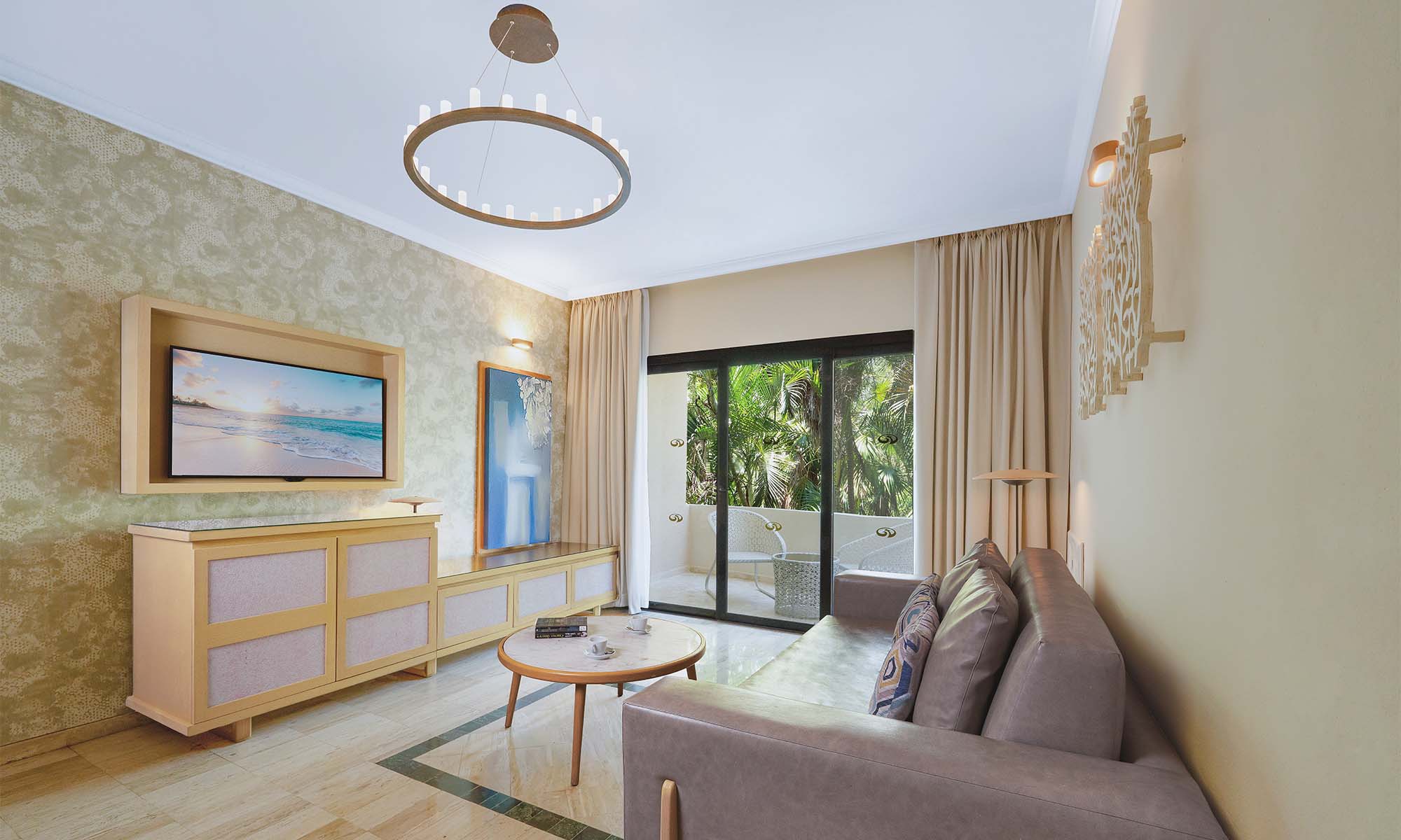 Upgrade to enjoy this spacious suite near the beach, featuring a separate living room and two terraces.