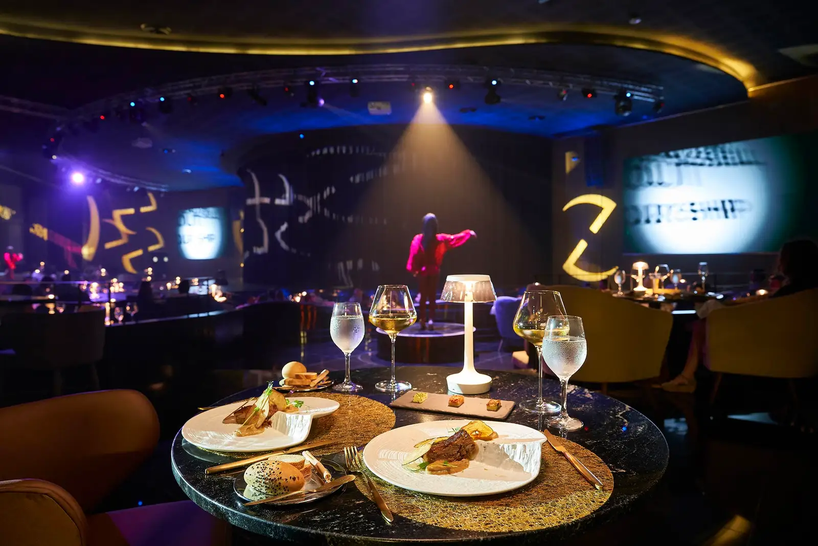 Coreografías sugerentes, acrobacias de infarto y espacio para la diversidad de estilos. Un espectáculo extraordinario de baile con mayúsculas, donde viajarás a través de la historia de la música, desde los primeros años del rock de los ‘50 hasta el pop más actual y los alegres ritmos latinos. Disfruta de una muestra de actuaciones puras que derrochan luz, color y diversión. Y deja hueco para la fiesta. Cuando la cena termina, sobra tiempo para bailar a tu manera..