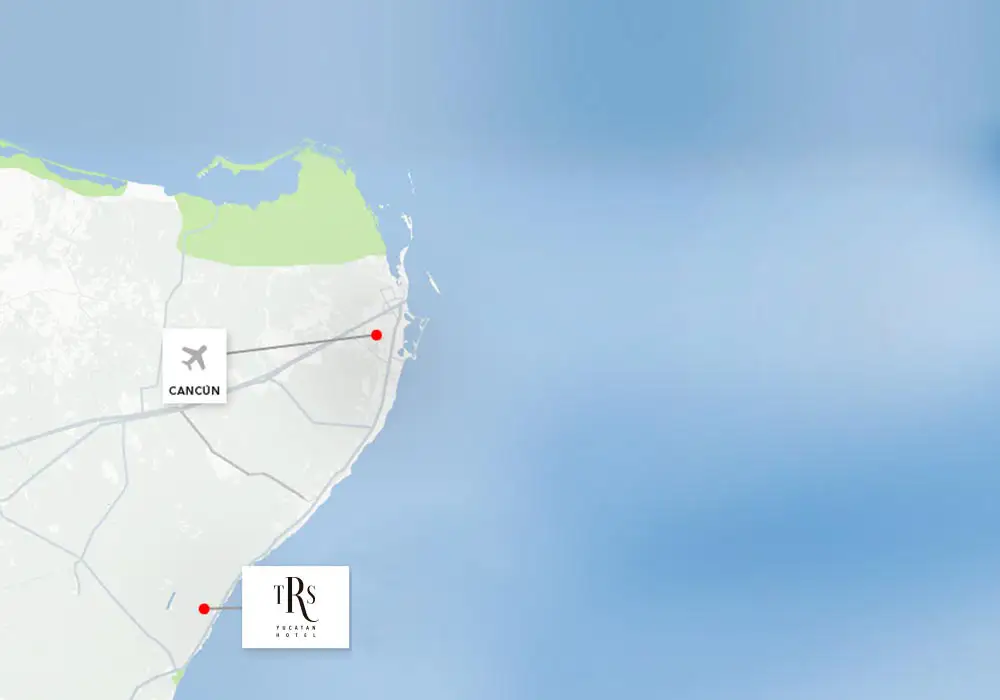 En coche desde el aeropuerto de Cancún: tomar la carretera Chetumal-Puerto Juárez en dirección a Tulum, atravesando el poblado de Puerto Morelos, Playa del Carmen y por último el poblado de Puerto Aventuras. Desde este último, continuar 5 minutos más y a la izquierda encontrarás la entrada al hotel.