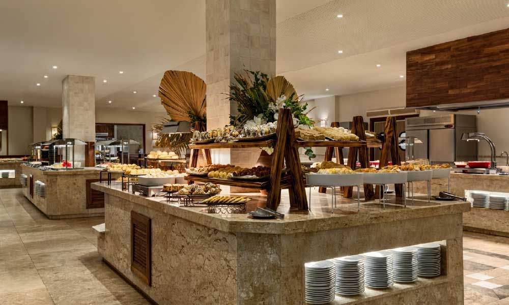Este resort cuenta con 12 bares de distintos estilos y ambientes, incluyendo un Sports Bar y un total de 6 restaurantes: 3 restaurantes internacionales con islas temáticas de autoservicio y show-cooking, y 3 restaurantes a la carta de cocina brasileña, italiana y japonesa.