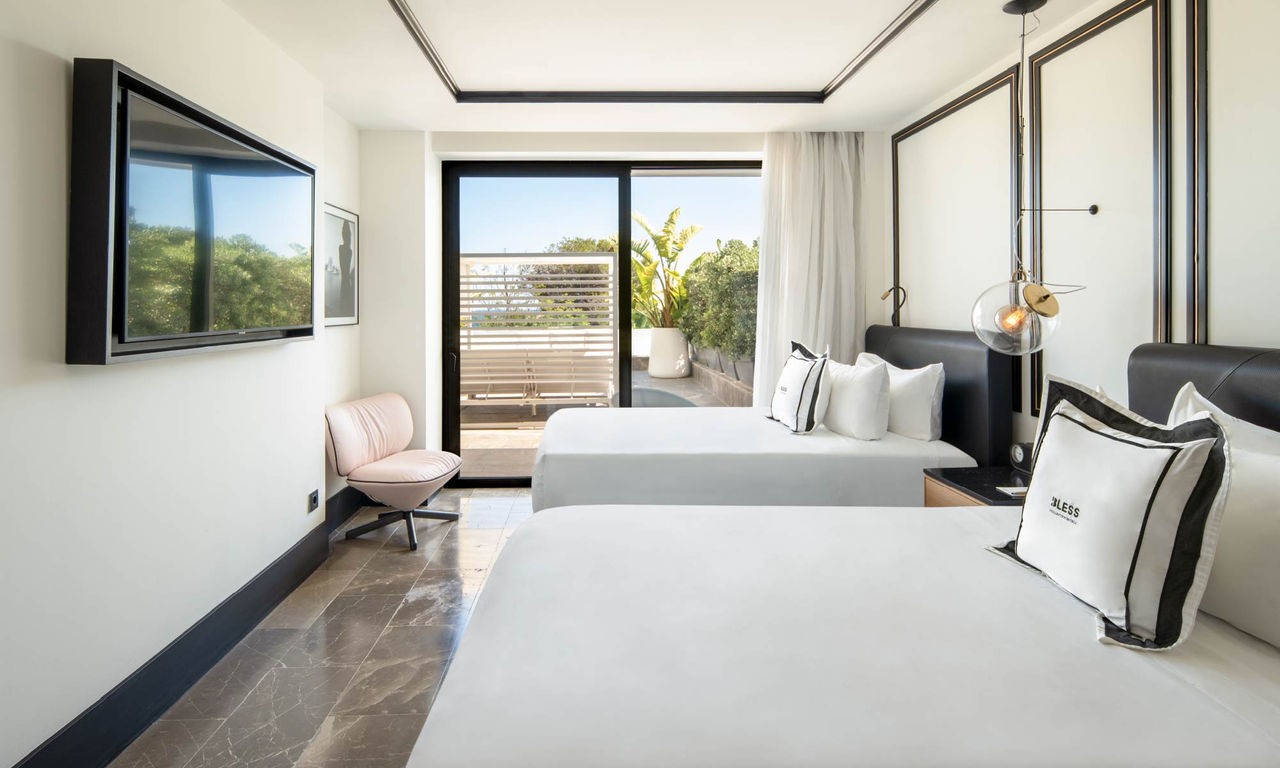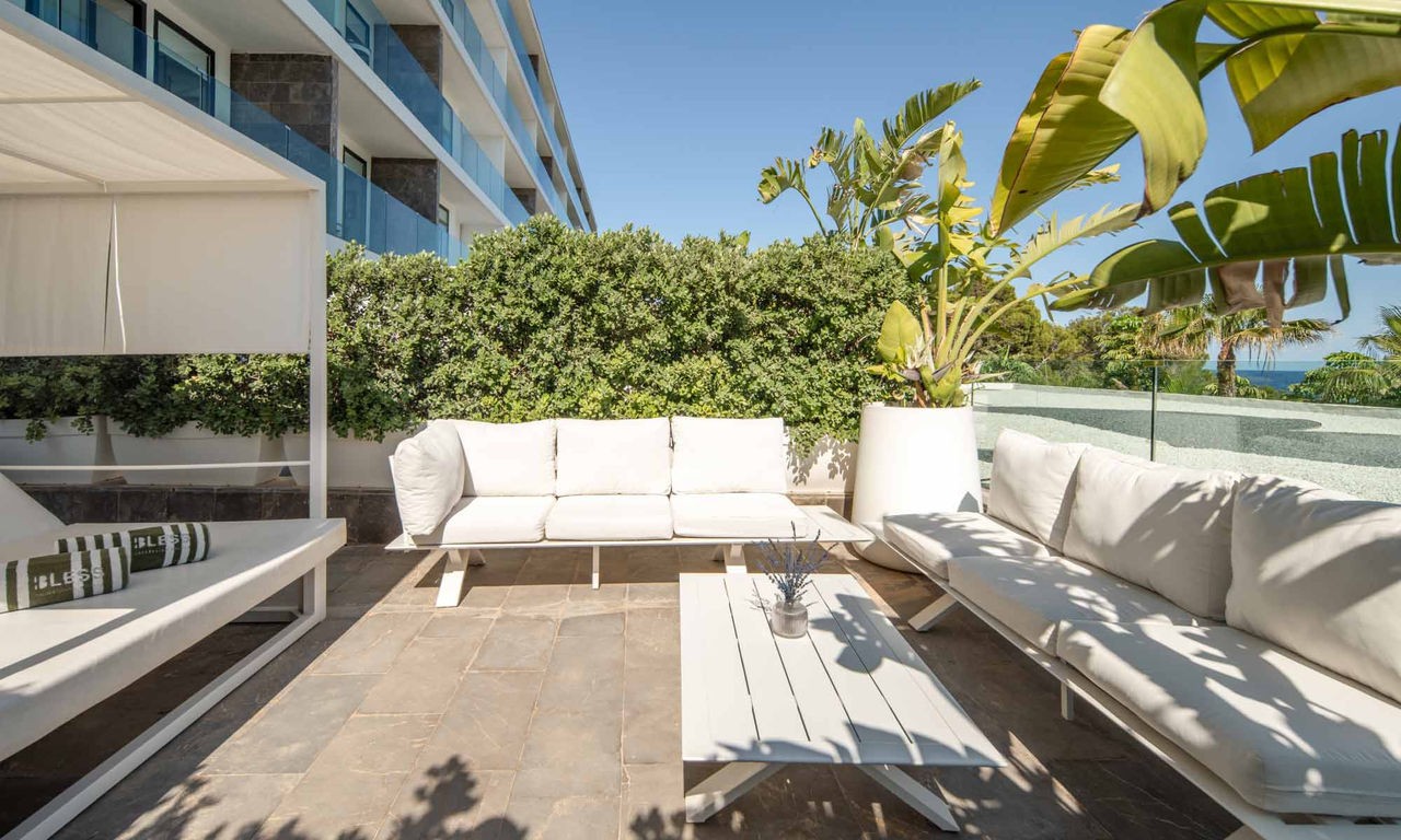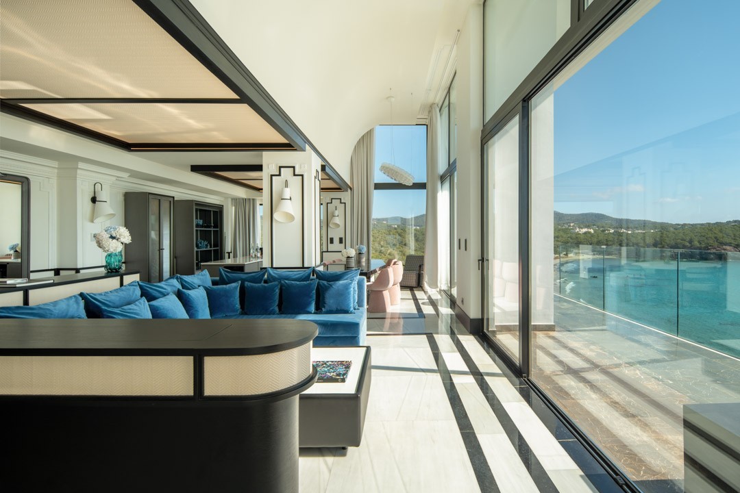 Trascorri una lussuosa vacanza a Ibiza nella suite di 47 m2 con terrazza, camera da letto, soggiorno separato, due TV da 55 pollici e e check-in alla VIP desk.