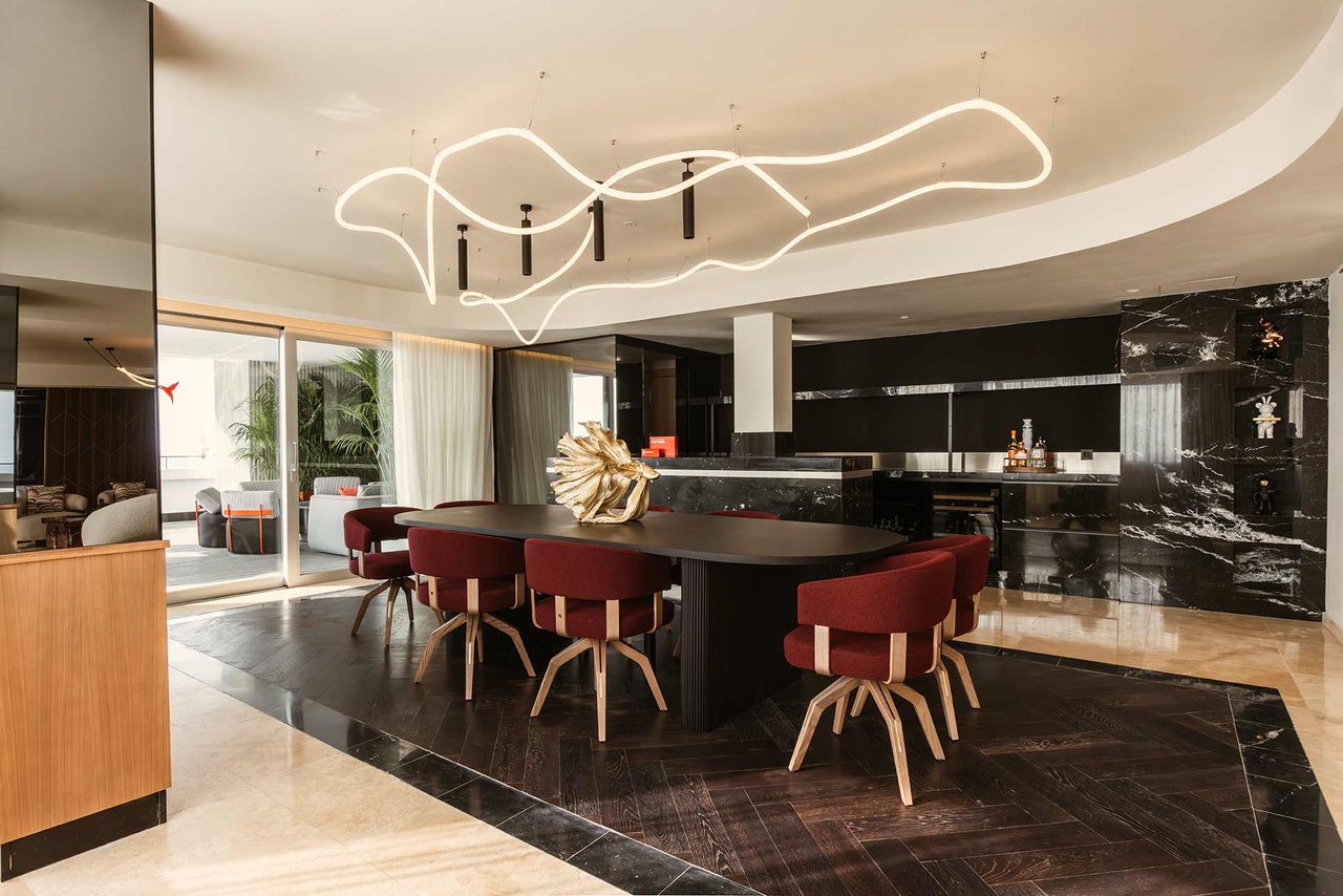 Este espaçosa e sofisticada cobertura, situada no oitavo andar, foi elaborada com atenção ao mais ínfimo detalhe e conta com uma impressionante vista para o mar e para o palco.