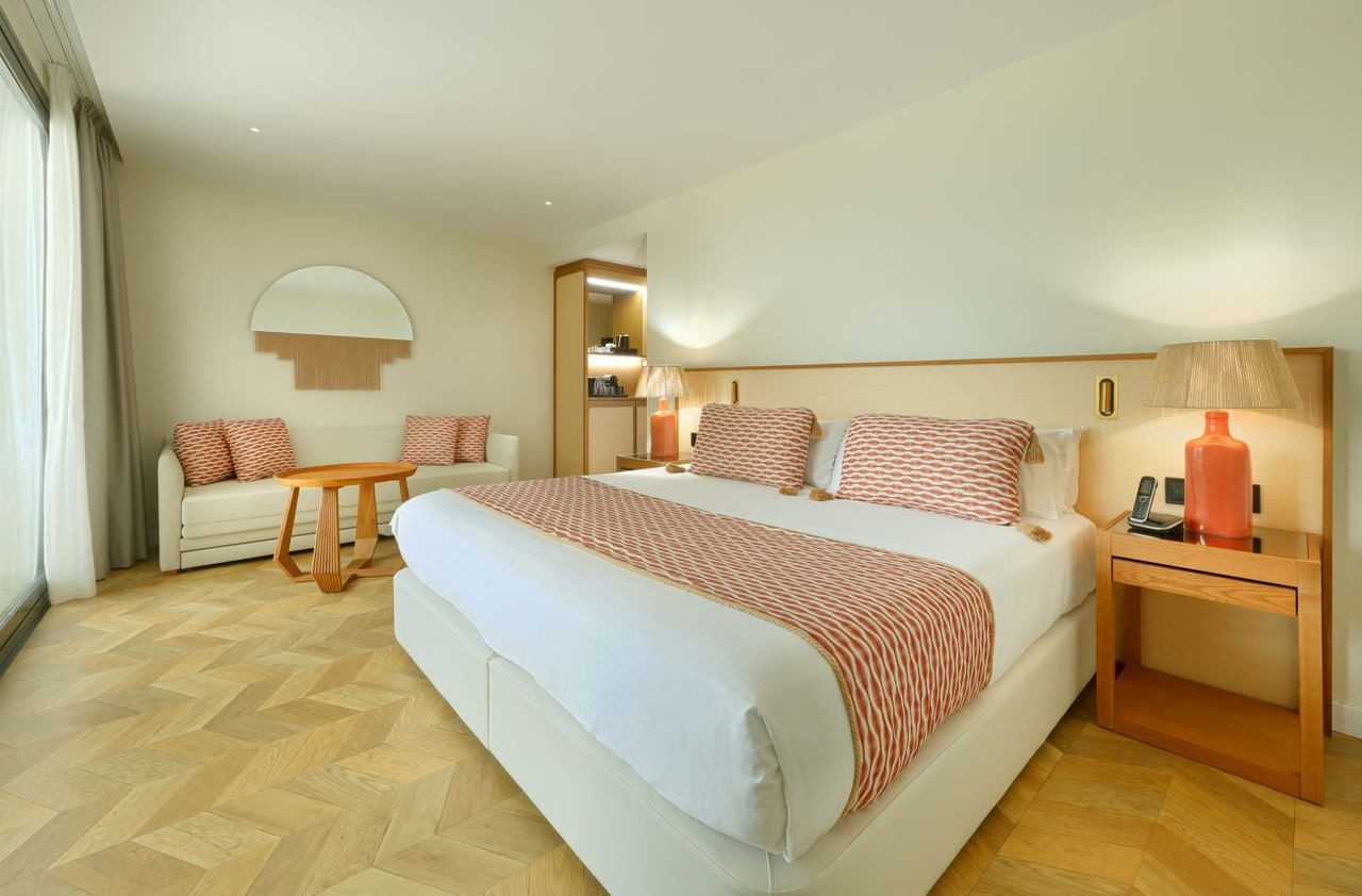 Desfrute de uma estadia exclusiva em Ibiza neste quarto com todos os confortos Deluxe e benefícios exclusivos The Signature Level.